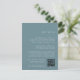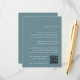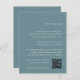 Esta empoeirada placa de detalhes de casamento azul da coleção Low Tide by Marinho Road Creative é uma forma moderna e elegante de compartilhar informações sobre viagem, acomodações e registro. Com um texto branco limpo e um código QR digitalizável, é ideal para destinos e casamentos costeiros.