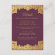 Cartão De Informações Detalhes do Casamento Ameixa Antiga Dourado Falso