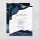 Cartões de detalhes para convidados de casamento com pedra de ágata azul marinho e brilho dourado falso, tipografia manuscrita elegante personalizável para os detalhes do seu evento.