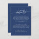 Este cartão de detalhes do casamento azul real boho chic é perfeito para um casamento minimalista. O design moderno boêmio azul escuro ousado apresenta caligrafia rústica simples com um estilo único e clássico.