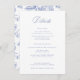Azul Regência, cartão de detalhes do casamento. Estilo vintage inspirado em chinoiserie com padrão floral de jardim e tipografia coordenada.