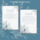 Elevem sua suíte de casamento com nosso Cartão de Detalhes Botânicos do Pastel, projetado para fornecer aos seus convidados todas as informações importantes de que eles precisam para seu dia especial. Esta carta maravilhosamente trabalhada apresenta delicadas ilustrações botânicas pastel, acrescentando um toque de elegância à sua papelaria de casamento. Lado frontal: Detalhes da recepção O lado frontal da placa é dedicado aos detalhes da recepção. Aqui, você pode fornecer informações sobre o local, horário de início, código de vestimenta e outras informações essenciais. O layout é limpo e fácil de ler, garantindo que seus convidados possam encontrar rapidamente as informações necessárias. Lado traseiro: Detalhes da acomodação Sacudir o cartão, e você encontrará detalhes de acomodação para ajudar seus convidados a planejar sua estadia. Inclua recomendações para hotéis próximos, opções de transporte e quaisquer taxas especiais que você tenha combinado para seus convidados. O formato claro e as informações concisas facilitam aos convidados a navegar com confiança. Impresso em estoque de cartolina de alta qualidade, nosso Cartão de Detalhes Botânicos do Pastel complementa qualquer conjunto de convites para casamento com sua serena design e sua utilidade prática. Com muito espaço personalizável, você pode garantir que seus convidados tenham todos os detalhes necessários para apreciar sua celebração.