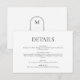 Cartão De Informações Detalhes do Casamento Branco e Preto do Monograma