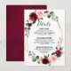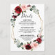 Cartão de detalhes do casamento floral temático em ardósia rosa empoeirado burgundy com buquê elegante de flores burgundy, vinho, azul empoeirado, rosas e botões de peônia e folhas de eucalipto verde empoeirado e moldura geométrica neutra com brilho falso vermelho. Por favor, entre em contato para qualquer ajuda na personalização ou se precisar de qualquer outro produto com este design