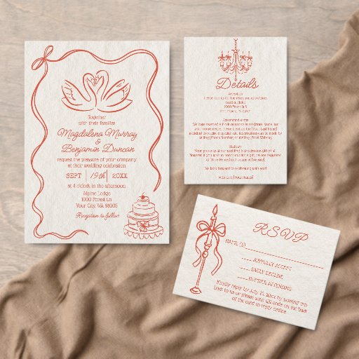 Retro Hand-Drawn Sunset Orange WeddingCriado por Margarita A