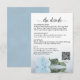 Este belo cartão de inclusão de casamento é projetado para lhe dar espaço extra para qualquer informação que seus convidados possam precisar, incluindo RSVP, registro, recepção, viagem, acomodações, etc., bem como um código QR personalizável direcionando seus convidados ao seu site para mais informações. O cartão apresenta um design lindo com uma única rosa azul pálida empoeirada e um título de caligrafia em script rendado lendo "os detalhes".