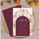 Este cartão de acompanhamento dos detalhes do casamento com arco de flores silvestres rústicas boho outono burgundy com modelos fáceis de usar em tipografia moderna elegante. Um adendo elegante e útil ao seu convite de casamento burgundy marfim creme, projetado para complementar perfeitamente o charme boho da sua celebração. Com uma prado de flores silvestres pintadas à mão em tons quentes de outono, como laranja queimado, terracota, roxo, amarelo, coral, umber queimado, pêssego e rosa suave, este cartão adiciona um toque de elegância e capricho. As belas flores outonais boêmias rústicas românticas criam uma estética refinada e inspirada na natureza, enquanto a tipografia elegante em script adiciona um contraste moderno. Projetado com arte original de Catherine Sweetman, este cartão de acompanhamento captura a essência da sua celebração, convidando seus entes queridos a