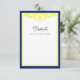 Detalhe do cartão de inclusão de casamento moderno azul naval com explosão de amarelo. Fácil de personalizar com seus detalhes. Explosão por © Mujka Design