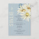 Apresentamos nosso charmoso cartão de detalhes de casamento, projetado para adicionar um toque de elegância rústica ao seu dia especial. Este design requintado apresenta um fundo azul poeirado suave, complementado por uma delicada caixa de texto branca delineada por uma fina moldura flutuante. Coroado por um deslumbrante spray de margaridas brancas e amarelas em aquarela e delicadas flores silvestres azuis, este design define o tom perfeito para a sua celebração. As cores suaves e o design rústico capturam a essência de um romance no campo, tornando-o uma escolha ideal. Criado por Simply Farmhouse Press.