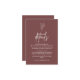 O Cartão de Alojamento de Detalhes de Casamento Mauve Boho Botanicals é uma mistura perfeita de romance e elegância, projetada para casais que querem adicionar um toque suave e sofisticado à sua papelaria de casamento. Apresentando delicados sotaques botânicos em uma paleta de cores mauve sonhadora, esta carta complementa lindamente temas de casamento boêmicos, rústicos e modernos. Ele fornece aos convidados detalhes essenciais do evento enquanto melhora a estética geral da sua suíte de casamento. Totalmente personalizável no Zazzle, ele permite que você personalize texto e elementos de design sem esforço, garantindo uma correspondência perfeita com seus convites de casamento e criando uma experiência memorável para seus convidados.