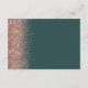 A borda esquerda desta elegante e moderna placa de detalhes do casamento contém um design dourado faux glitter. O texto personalizável combina manuscrito colorido de rosa pálido, fontes copperplate e itálico em um fundo verde escuro. O verso apresenta um design brilhante verde escuro e rosa dourado correspondente.