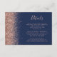 A borda esquerda desta elegante e moderna placa de detalhes do casamento contém um design dourado faux glitter. O texto personalizável combina a escrita manual rosa-rosa-rosa pálida, as fontes em copperplate e itálico num fundo azul-marinho. O verso apresenta um design brilhante marinho azul e rosa dourado correspondente.