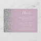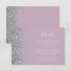 A borda esquerda deste elegante e moderno cartão de detalhes de casamento contém um design brilhante falso prateado. O texto personalizável combina a escrita manual branca e as fontes de impressão em um fundo roxo de lavanda empoeirado. O verso apresenta uma lavanda empoeirada e design brilhante prateada.