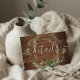 O cartão de informação para detalhes de casamento apresenta uma aquarela verde moderna e elegante em madeira rústica.