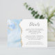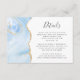 A borda esquerda deste elegante cartão de detalhes do casamento moderno apresenta um bebe azul aquarela agate borda aparada com falso brilho dourado. O título aparece no script de escrita manual, com texto personalizável abaixo na fonte da placa de reprodução da cinza de carvão em um fundo branco. O verso apresenta um design de agate dourado e azul-bebê correspondente.