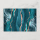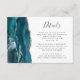 A borda esquerda deste elegante cartão de detalhes de casamento moderno apresenta uma borda azul-lacrimejante agate com falso brilho rosa. O título aparece no script de escrita manual, com texto personalizável abaixo na fonte da placa de reprodução da cinza de carvão em um fundo branco. O verso apresenta um design verde azul e rosa dourado correspondente.