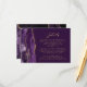 A borda esquerda deste elegante cartão de detalhes de casamento moderno apresenta uma borda de agitação de cor d'água roxa, aparada com falso brilho dourado. O título está em script de escrita manual, com o texto personalizável abaixo em fonte sans serif de cor dourada sobre fundo roxo profundo. O verso apresenta um design de agate roxo e dourado correspondente.