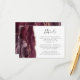 A borda esquerda deste elegante cartão de detalhes de casamento moderno apresenta uma borda de cor-d-água borrifada, aparada com falso brilho rosa. O título aparece no script de escrita manual, com texto personalizável abaixo na fonte da placa de reprodução da cinza de carvão em um fundo branco. O lado inverso apresenta um design de burgundy e ouro-rosa.
