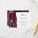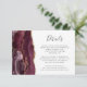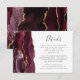 A borda esquerda deste elegante cartão de detalhes de casamento moderno apresenta uma borda de cor-d-água borrifada, aparada com falso brilho dourado. O título aparece no script de escrita manual, com texto personalizável abaixo na fonte da placa de reprodução da cinza de carvão em um fundo branco. O lado inverso apresenta uma burgundy e uma design de agata dourada.