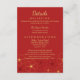 Cartão de detalhes do casamento com design de cerejeiras em vermelho e dourado.