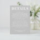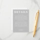 Cartão De Informações Detalhes do Casamento de cinzas e Brancos