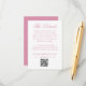 Compartilhe todas as informações importantes que seus convidados precisam com este cartão romântico de detalhes do casamento de rosa quartzo. "The Details" é escrito elegantemente em caligrafia de quartzo de rosa suave em um fundo branco, com seções personalizáveis para acomodações, transporte, detalhes de recepção e muito mais. Adicione o seu site de casamento personalizado e as instruções opcionais abaixo. Um código QR é incluído para fácil acesso ao seu site com apenas uma varredura rápida. A parte de trás do cartão apresenta as suas iniciais monográficas moldadas por uma delicada crista floral branca num fundo cor-de-rosa rosa quente, com espaço para os seus nomes e data de casamento. Uma peça perfeita de coordenação para a sua suíte de convite de casamento.