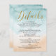 Cartão de casamento de praia de destino para anexar seus convites. A design apresenta elegante caligrafia dourada e linha da costa oceânica com aquarela. Esta bela e versátil design tem um fundo de praia arenoso e os "detalhes" são feitos à mão. O modelo está pronto para que você adicione detalhes para ajudar seus convidados a planejar e reservar sua viagem. Design para um casamento de destino tropical, casamento de vintage à beira-mar, tema marítimo náutico ou de verão. Por favor, procure na minha loja a coleção Boho Beach para coordenar cartões de gabinete e acessórios de correio.