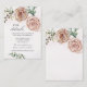 O cartão de cerimônia floral retrata um elegante design de aquarela simples com duas rosas cor-de-rosa vintage e verde adornado com poeira de ouro rosa. Ele contém informações de recepção e site e pode ser personalizado para os detalhes de sua escolha.*