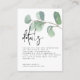 MINI tamanho 3,5 x 2,5" com este gabinete de detalhes de casamento verde Eucalyptus com script informal. O cabeçalho está em um estilo elegante de escrita manual com os detalhes abaixo e as folhas verdes de eucalipto com aquarela fluem pelo topo. Personalize facilmente com seus próprios detalhes.