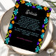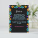 Compartilhe informações importantes sobre o casamento em estilo com este Cartão de Gabinete de Detalhes de Casamento da Elegante Fiesta. Decorado com florais vibrantes inspirados no México em tons negros de vermelho, rosa, amarelo e laranja, o design traz encanto festivo para sua celebração enquanto mantém um olhar refinado e sofisticado. A tipografia graciosa e um layout limpo garantem que seus detalhes, como acomodações, direções ou código de vestimenta, sejam claros e belamente apresentados. Perfeito para casais que querem misturar talento cultural alegre com elegância eterno em todos os elementos de sua suíte de casamento.