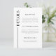 Cartão de inclusão de convite de casamento simples com aparência limpa e minimalista com uma linha e título ao lado. Personalize este convite adicionando informações sobre o seu casamento, incluindo recepção, acomodação e site. A cor é em preto e branco.