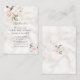Design de cartão elegante com cor d'água, delicadas flores rosadas cor-de-rosa pinceladas e folhas verdes, falsos dourados esboçados flores, sobre fundo de mármore branco creme. No buquê das flores brancas. Use a ferramenta Personalizar para adicionar suas informações, alterar fontes, cores da fonte. Para obter itens correspondentes, visite minha Coleção Floral Dourada Blush.