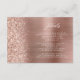 Esta elegante e moderna placa de detalhes de casamento contém uma imagem de fundo de metal escovado em ouro rosa com dourado salpicado com brilho de diamante falso. Personalize o texto branco, com o título "Detalhes" no script de escrita manual do na moda e o texto restante na fonte sans serif. O verso apresenta um rosa dourado correspondente, metal escovado e design brilhante.