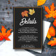 Este elegante cartão de casamento outono detalhado é perfeito para um casamento moderno no outono. As simples design incluem folhas de cartazes com elegante tipografia branca sobre fundo preto.