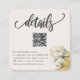 Cartão De Informações Detalhes do Casamento de Peony QR Dourado Elegante