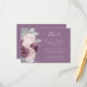 A borda esquerda deste elegante cartão de detalhes de casamento moderno apresenta um buquê floral cor-de-rosa mauve e pincelado, aparado com falso brilho prateado. O título aparece em um script de escrita manual de cinzas prateadas, com texto personalizável abaixo na fonte da placa, em um fundo púrpura de mola. O reverso é massa sólida.
