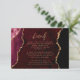 Esta elegante e moderna carta de detalhes de casamento contém uma cor-d-água vermelha arrojada, com imagem de fundo cortada com falso brilho dourado. O título aparece no script de escrita manual, com texto personalizável abaixo na fonte de impressão dourada. O lado inverso apresenta uma burgundy e uma design de agata dourada.