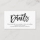 Receptáculo de Detalhes de Casamento de Código QR do Mini Script. Adicionar seu código QR ao seu site de casamento no verso faz com que esta seja uma opção conveniente para seus convidados verem todos os detalhes. Você pode criar códigos QR gratuitamente on-line. Basta pesquisar "Criador de código QR" e muitas opções surgem para criar gratuitamente. Uma tendência de tipografia com motivo cardíaco em preto para o título principal Detalhes e o resto do texto que pode facilmente personalizar.