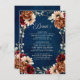 Elegante azul-Marinho, Terracotta, Terra Laranja, tema floral, cartão com buquê elegante de azul-Marinho, rosas de cor Terracotta e folhas verdes de eucalipto. Entre em contato comigo para obter ajuda sobre a personalização ou se você precisar de outro produto com este design.