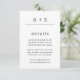 Cartão de cerimônia de detalhes moderno de casamento com um simples design com seu monograma em preto sobre fundo branco. Seus detalhes estão em minúsculas e acrescentam ao sentimento atual. Estes cartões são perfeitos para um casamento minimalista.