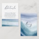 Informe seus convidados sobre seus detalhes de casamento, como acomodações de hotel, recepção, registro de presentes, instruções e site de casamento com este cartão de cerimônia de Detalhes do tema náutico. As ondas abstrato do oceano em tons de cor azuis e turquesa costeiros e um monograma personalizado de cavalo marinho e concha marinha de casal fazem disso uma escolha perfeita para um tema de praia ou casamento à beira-mar. Arte por KL Stock