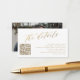 Tendência minimalista simples caligrafia de ouro fotográfico moderna detalhes do casamento digitalizando o código QR para cartões de cercado do site (o código é gerado automaticamente com o URL do seu link). Fácil de personalizar com sua foto (traseira), seu código e texto.