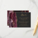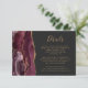 A borda esquerda deste elegante cartão de detalhes de casamento moderno apresenta uma borda de cor-d-água borrifada, aparada com falso brilho dourado. O título aparece em script de escrita manual, com texto personalizável abaixo em uma fonte em cores douradas em um fundo de cinza de carvão negro. O lado inverso apresenta uma burgundy e uma design de agata dourada.