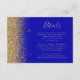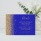 A borda esquerda deste elegante cartão de detalhes de casamento moderno apresenta um design dourado faux glitter. O texto personalizável combina manuscrito colorido de ouro pálido, fontes em copperplate e itálico em um fundo azul real. O verso apresenta um design de brilho azul real correspondente e ouro.