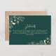 Na moda emerald green e cartão de noivado dourado com sotaques florais elegantes. Este cartão de inserção é perfeito para compartilhar informações extras de casamento, como seu site de casamento, site de RSVP, detalhes de recepção, instruções, acomodações ou outras notas importantes para os convidados. Coordena-se lindamente com a suíte de convites para casamento emerald green e gold.