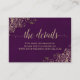 Cartão De Informações Detalhes do Casamento em Renda Dourada e Roxo Chic