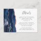 A borda esquerda deste elegante cartão de detalhes de casamento moderno apresenta um marinho azul de aquarela, borda agitada com falso brilho rosa de ouro. O título aparece no script de escrita manual, com texto personalizável abaixo na fonte da placa de reprodução da cinza de carvão em um fundo branco. O verso apresenta um design marinho de agate azul e rosa dourado correspondente.