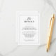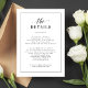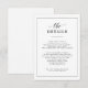 O elegante cartão clássico de detalhes de casamento preto e branco é perfeito para casais que hospedam eventos de casamento sofisticados e eternos. O seu refinado design monocromático complementa uma variedade de celebrações, incluindo casamentos de gravatas negras, cerimônias religiosas tradicionais, recepções elegantes de salão de baile e temas modernos e minimalistas. Esta placa de gabinete fornece uma maneira ideal de compartilhar detalhes importantes de casamento, como informações sobre locais, códigos de vestimenta e instruções de RSVP, em formato polido e na moda. Personalizável com as suas informações, garante que os seus convidados estejam bem informados e, ao mesmo tempo, adicione um toque de elegância à sua papelaria de casamento.