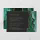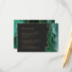 A borda direita deste elegante e moderno cartão de detalhes de casamento contém uma esmeralda verde aquarela agate borda aparada com falso brilho dourado. O título aparece em maiúsculas de serif romanas, com texto personalizável abaixo em letra de cor dourada em fundo preto. O verso apresenta um design verde e dourado correspondente.