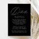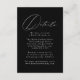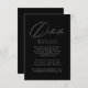 Cartões de cerimônia simples e elegantes com "Detalhes" em um roteiro branco de caligrafia moderna. O fundo preto apresenta speck brancos sutis para criar um design único. Personalize os cartões de cercado minimalistas adicionando seus detalhes de casamento em letras brancas. Projetado para coordenar com a nossa coleção de casamento do Modern Elegance.